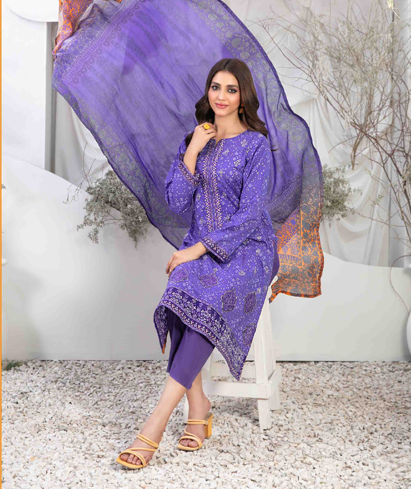 3 Piece Un-Stitched Collection by Tawakkal Fabrics, Attractive & Elegant Lawn Collection comes with: