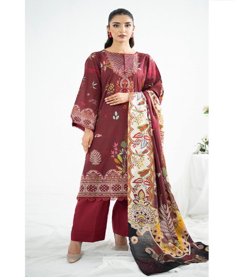 BA Dastoor by Guljee- 06 * Front- Dyed Luxary Lawn Embroidered * Back- Dyed Luxury Lawn Embroidered * Sleeves- Dyed Luxury Lawn Embroidered * Laces- Dyed Luxury Lawn Embroidered * Duppata- Luxury Digital Printed Bambar Chiffin Embroidered Cut-Work * Trouser- Dyed Cambric Cotton