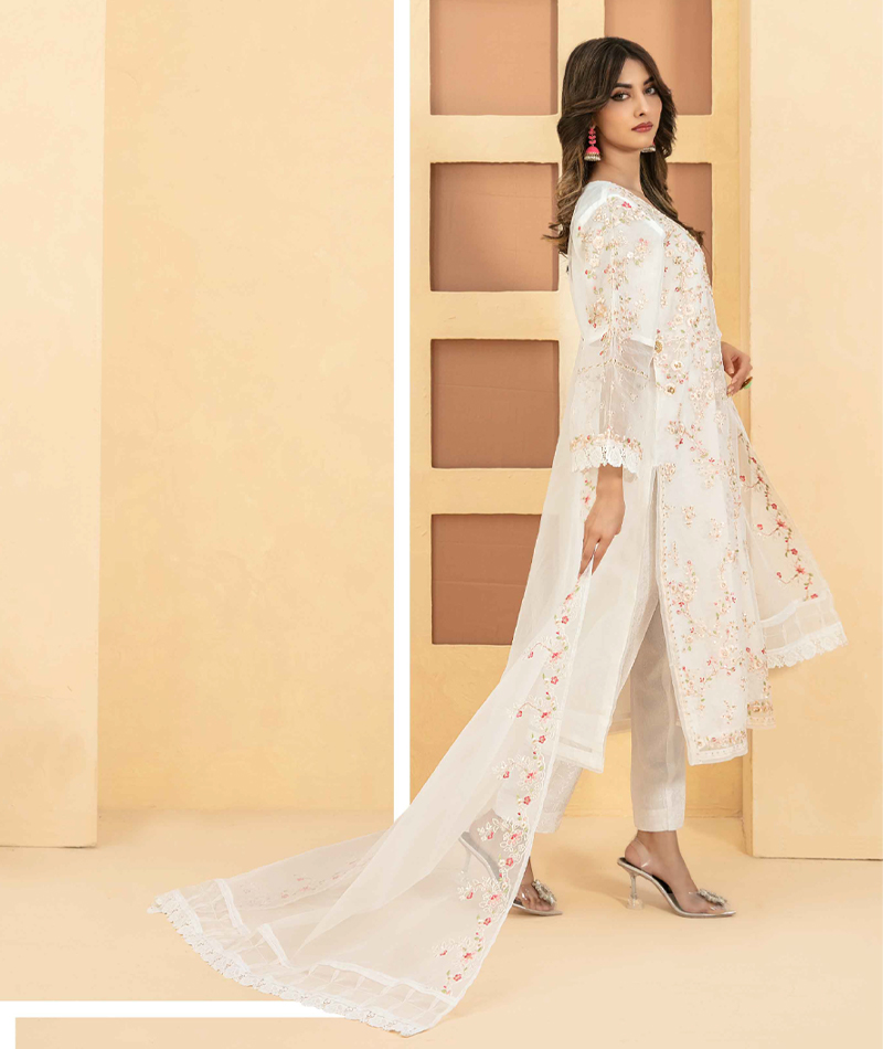 Taalea by Tawakkal- D2181 * Shirt- Stitched Embroidered Organza * Dupatta- Embroidered Organza * Trouser- Stitched Viscose Jacquard