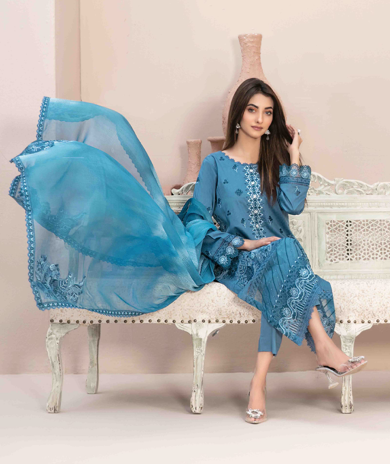 Lema by Tawakkal- D2166 * Shirt- Embroidered Lawn Jacquard * Dupatta- Embroidered Fancy Dupatta * Trouser- Cotton Fabrics