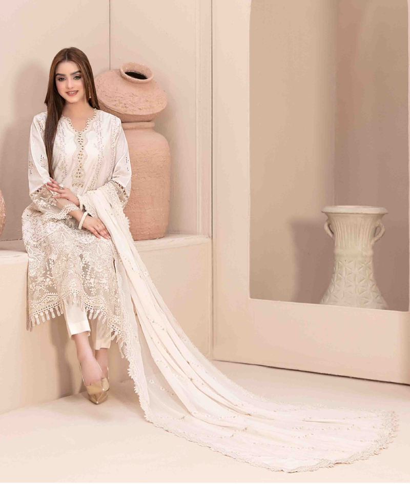 Lema by Tawakkal- D2169 * Shirt- Embroidered Lawn Jacquard * Dupatta- Embroidered Fancy Dupatta * Trouser- Cotton Fabrics