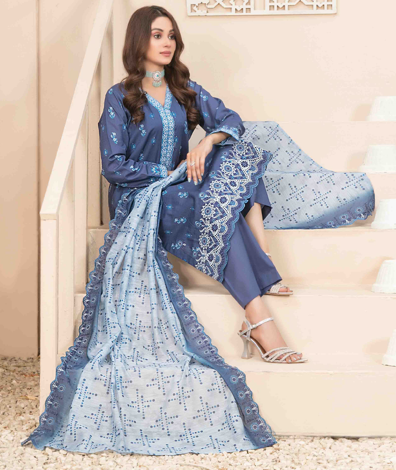 Monireh by Tawakkal- D2054 * Shirt- Embroidered Lawn Digital Print * Dupatta- Embroidered Digital Printed Cutwork Dupatta * Trouser- Cotton Fabrics