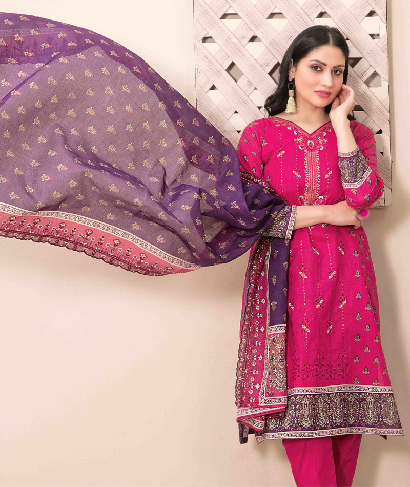 Ursiya by Tawakkal- D2602 * Shirt- Embroidered Lawn Digital Print * Dupatta- Embroidered Digital Printed Cutwork Dupatta * Trouser- Cotton Fabrics