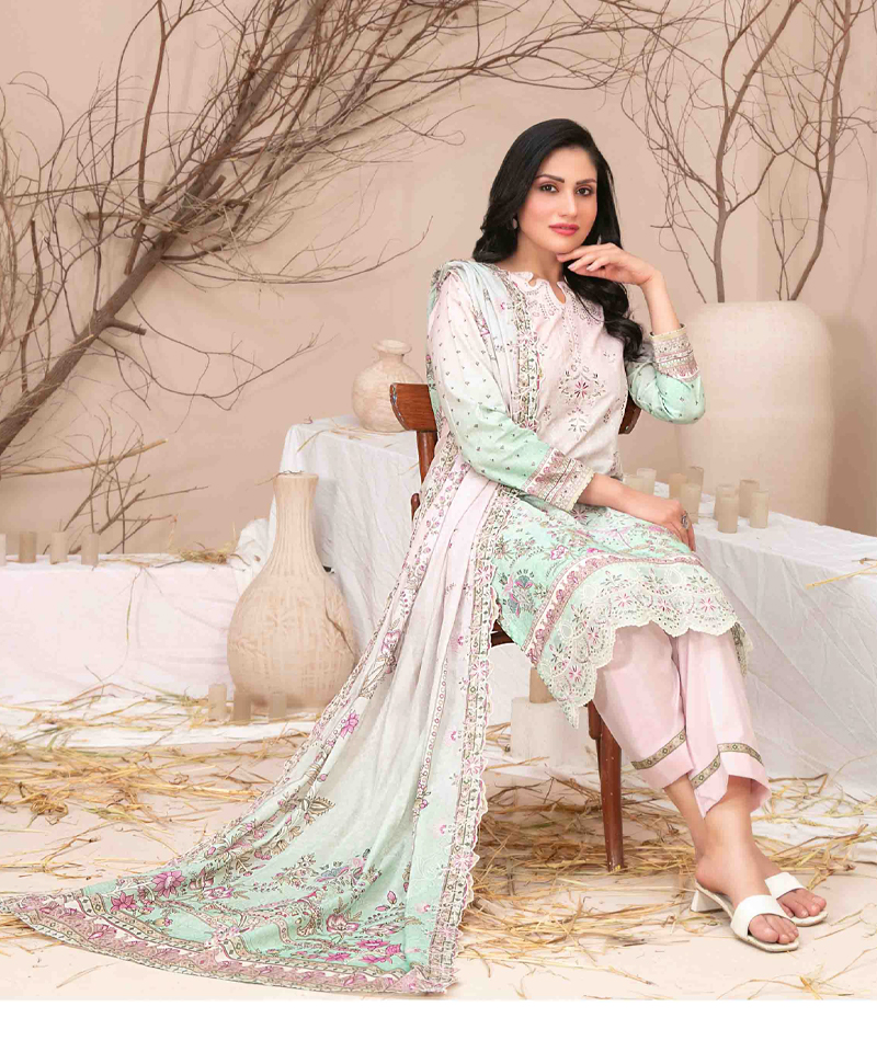 Ursiya by Tawakkal- D2603 * Shirt- Embroidered Lawn Digital Print * Dupatta- Embroidered Digital Printed Cutwork Dupatta * Trouser- Cotton Fabrics