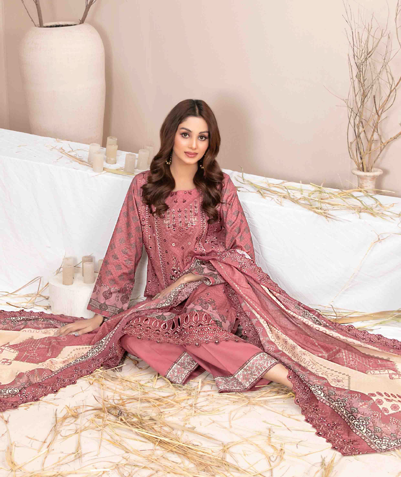 Ursiya by Tawakkal- D2604 * Shirt- Embroidered Lawn Digital Print * Dupatta- Embroidered Digital Printed Cutwork Dupatta * Trouser- Cotton Fabrics