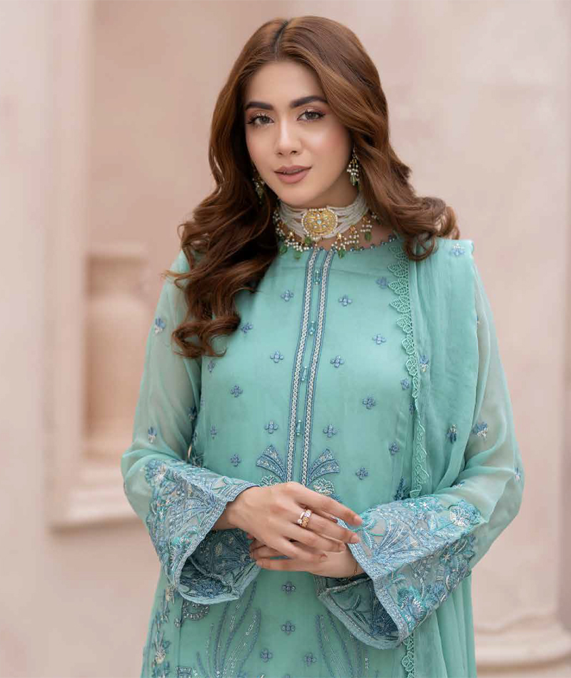 Maisa Luxury Chiffon D-08 * SHIRT:- Heavy Embroidered Chiffon Shirt * DUPATTA:- Heavy Embroidered Chiffon Dupatta With Lace * TROUSER:- Jacquard Trouser