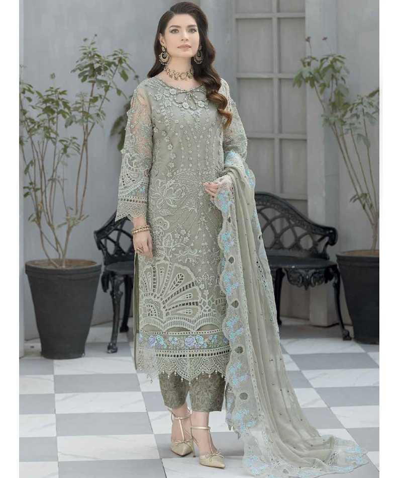 Ciera Luxury Organza D-002 * SHIRT:- SEMI-STICHED ORGANZA PARTY WEAR SHIRT * DUPATTA:- EMBROIDERED CHIFFON DUPATTA * TROUSER:- RAW SILK TROUSER