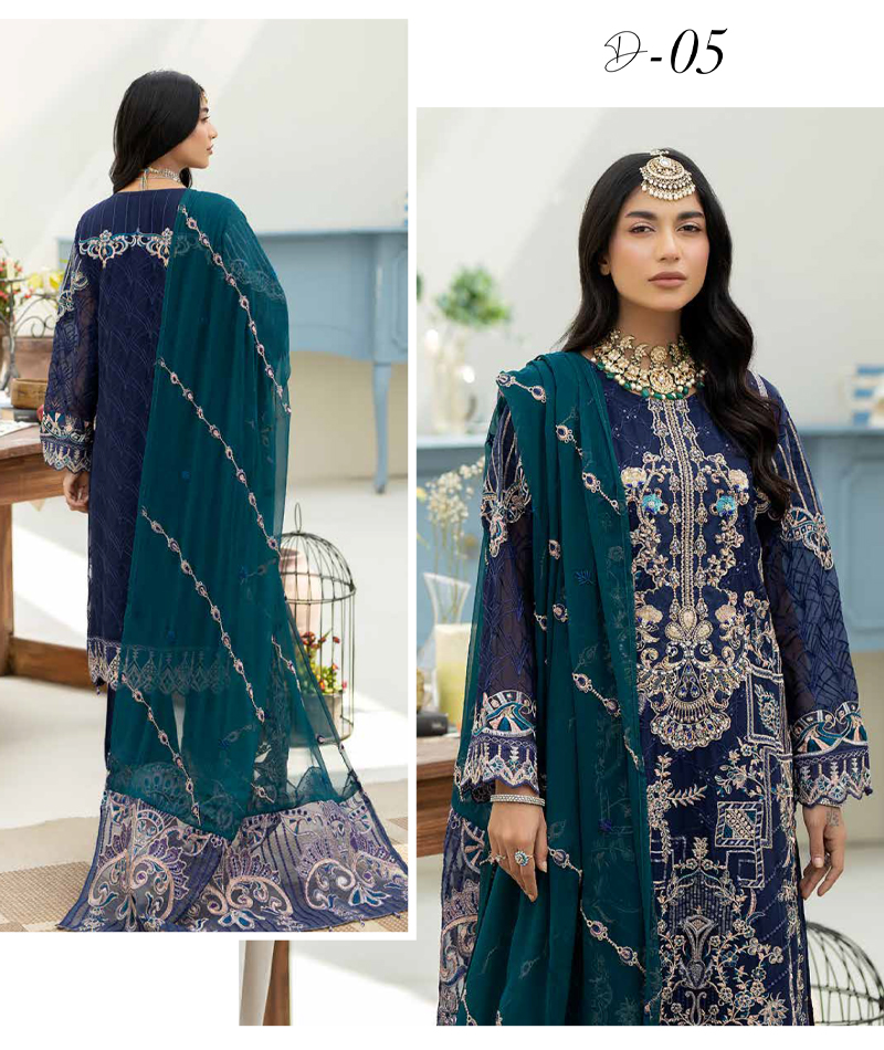 Koel Luxury Chiffon D-05 * SHIRT:- Chiffon PARTY WEAR SHIRT * DUPATTA:- EMBROIDERED CHIFFON DUPATTA * TROUSER:- EMBROIDERED CUTWORK Silk TROUSER