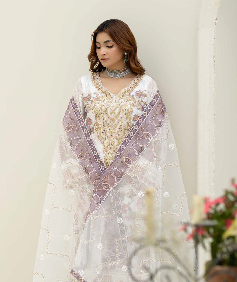 Koel Luxury Chiffon D-10 * SHIRT:- Chiffon PARTY WEAR SHIRT * DUPATTA:- EMBROIDERED CHIFFON DUPATTA * TROUSER:- EMBROIDERED CUTWORK Silk TROUSER