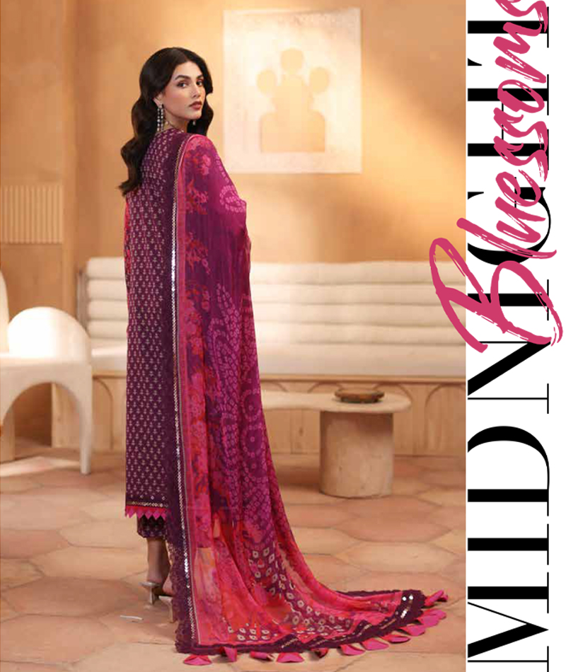 Reem Emb Lawn Chiffon CRS4-02 * Embroidered Printed lawn Front * Printed Lawn Back+Sleeves * Printed Cotton Trouser * Printed Chiffon Dupatta