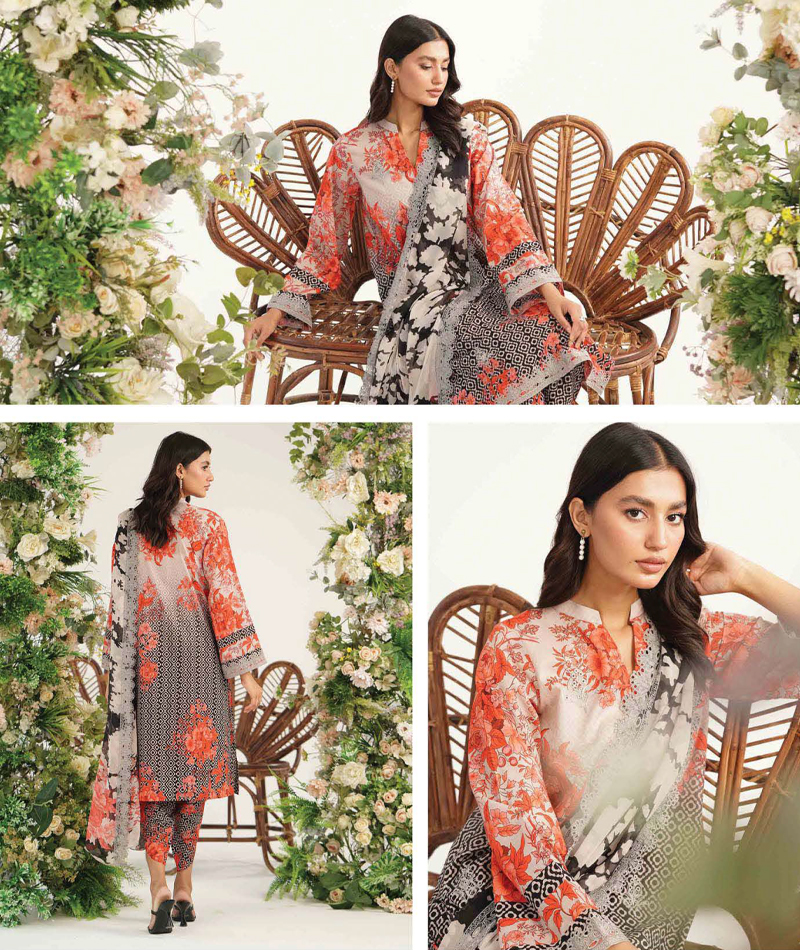 Rang e Bahar CRB-23 * EMBROIDERED PRINTED LAWN SHIRT * EMBROIDERED PRINTED CHIFFON DUPATTA * PRINTED COTTON TROUSER