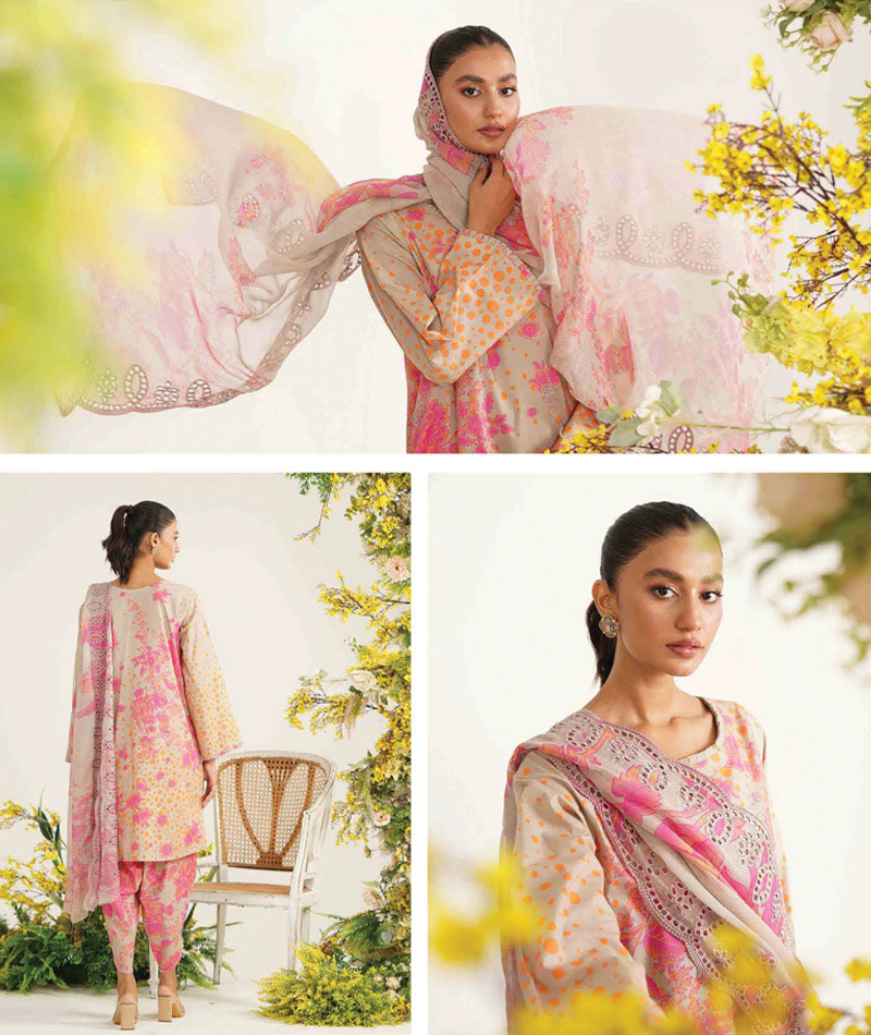 Rang e Bahar CRB-35 * EMBROIDERED PRINTED LAWN SHIRT * EMBROIDERED PRINTED CHIFFON DUPATTA * PRINTED COTTON TROUSER