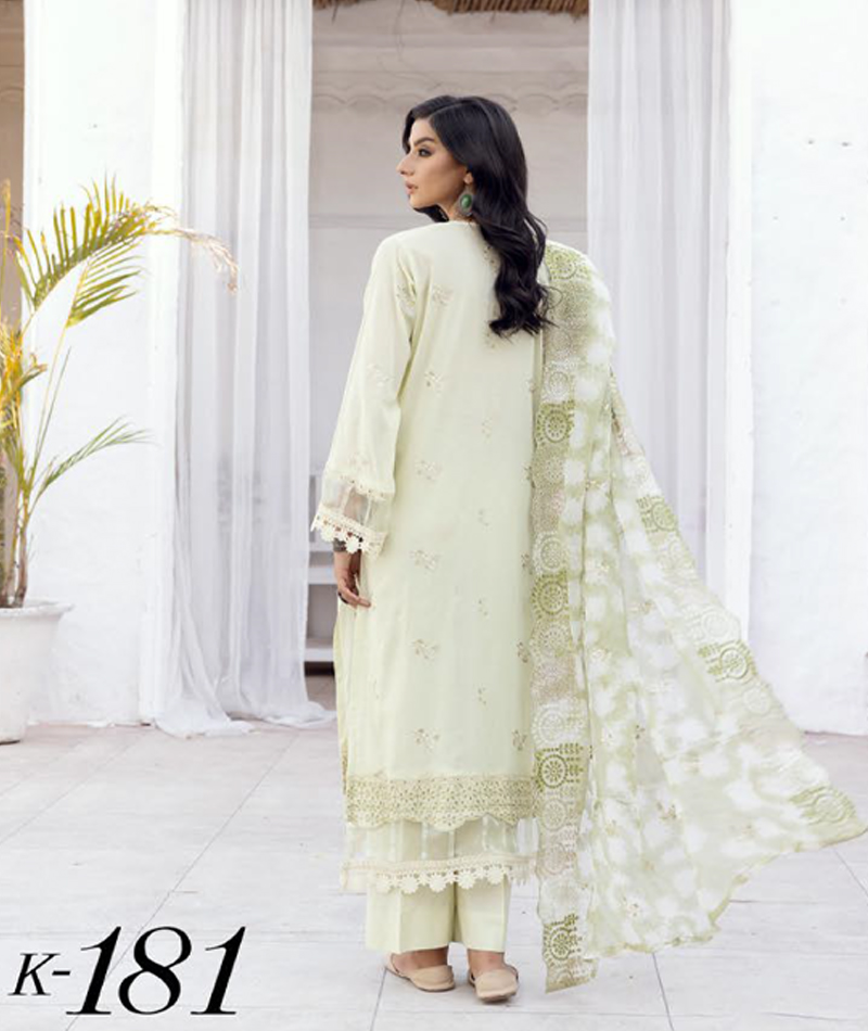 Signature Swiss K-181 * Exclusive Embroidered Swiss Dress * Embroidered Chiffon Dupatta * Cotton Pant