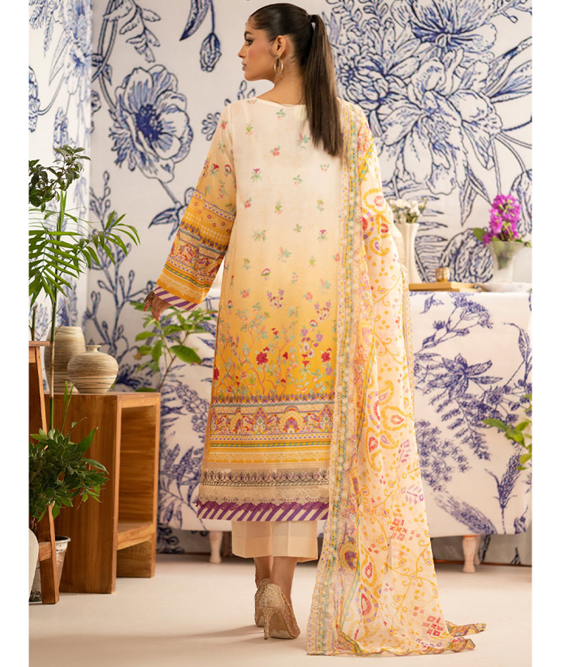 ROSHNAI VOL-01 ARTICLE-A10 * Digital Printed Embroidered Lawn Dress * Digital Printed Bamber Chiffon Dupatta * Dyed Cambric Cotton Trouser