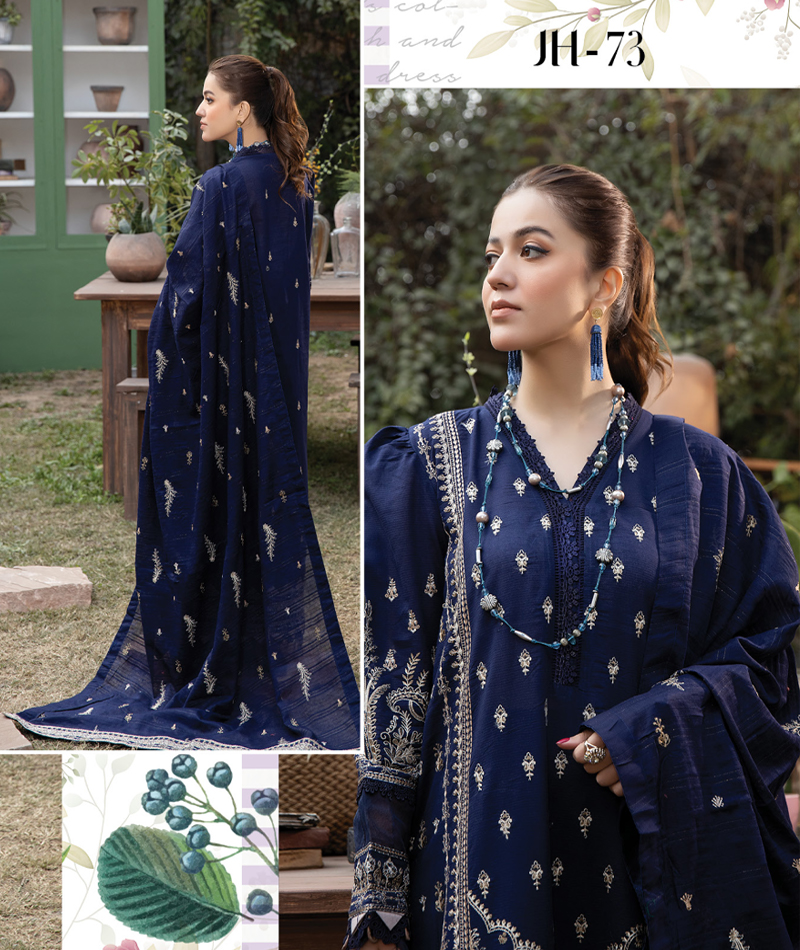 Renza JH-73 * Heavy Embroidered Shirt * Embroidered Back * Heavy Embroidered Sleeves * Embroidered Jaquard Lawn Dupatta * Plain Trouser