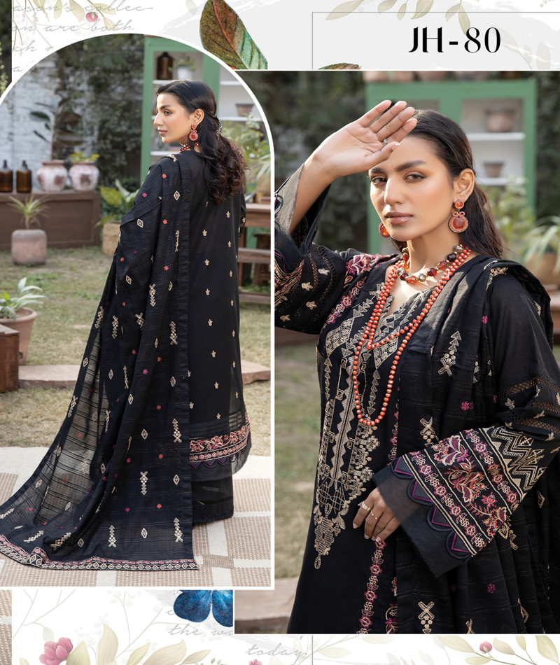 Renza JH-80 * Heavy Embroidered Shirt * Embroidered Back * Heavy Embroidered Sleeves * Embroidered Jaquard Lawn Dupatta * Plain Trouser