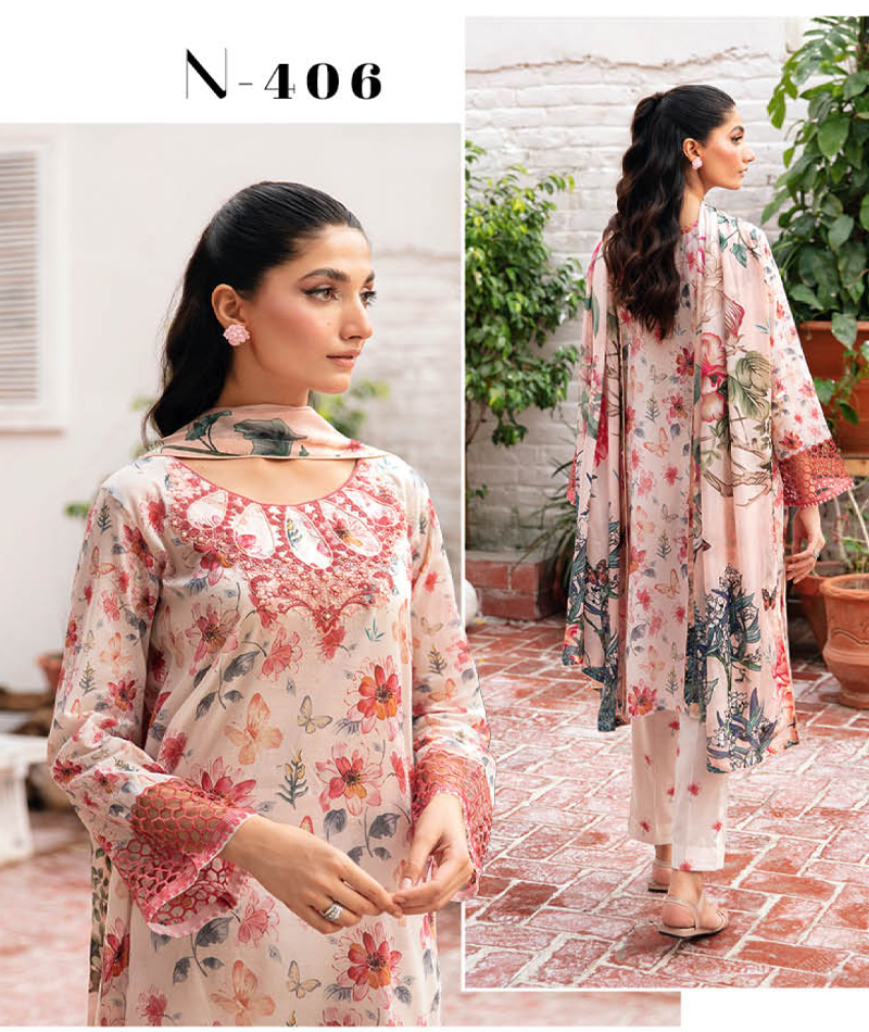 Rangrez N-406 * Cotton With Embroidered Work * PRINTED CHIFFON DUPATTA * PRINTED COTTON TROUSER