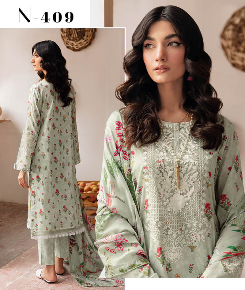 Rangrez N-409 * Cotton With Embroidered Work * PRINTED CHIFFON DUPATTA * PRINTED COTTON TROUSER