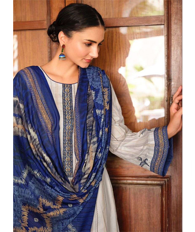 Mumtaz Arts 17001 *Top Pure Viscose Jam Satin Digital Print With Heavy Neck & Daman Embroidery *Bottom Pure cotton dyed salwar *Dupatta Digital Print Box Pallu Lawn Dupatta