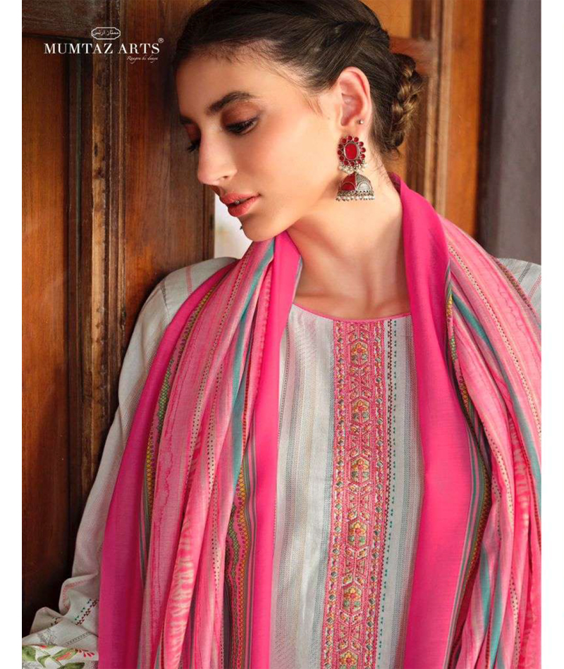 Mumtaz Arts 17003 *Top Pure Viscose Jam Satin Digital Print With Heavy Neck & Daman Embroidery *Bottom Pure cotton dyed salwar *Dupatta Digital Print Box Pallu Lawn Dupatta
