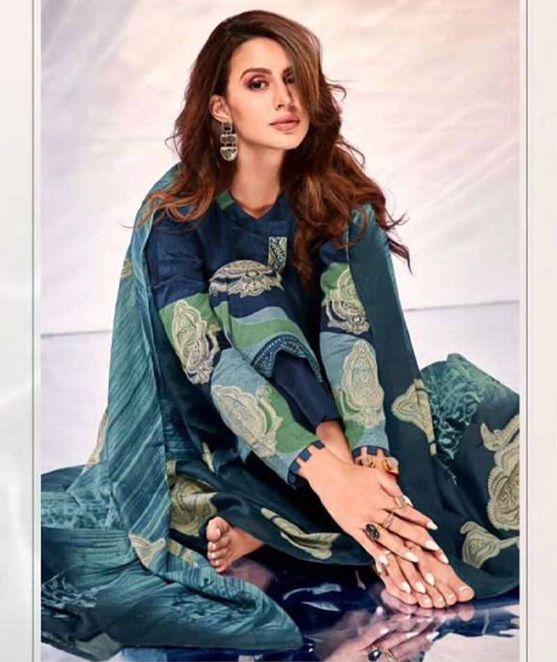 Naziya 2004 Top Pure Viscose Jam Satin Digital Print With Heavy Neck & Daman Embroidery Bottom Pure cotton dyed salwar Dupatta Digital Print Box Pallu Lawn Dupatta