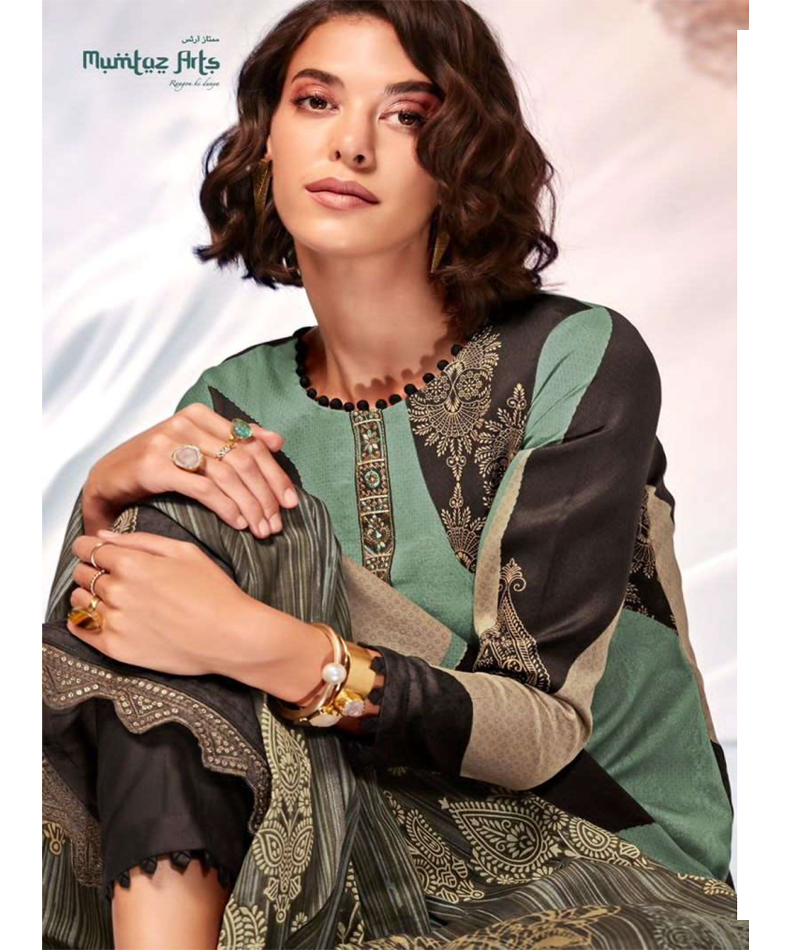 Naziya 2008 Top Pure Viscose Jam Satin Digital Print With Heavy Neck & Daman Embroidery Bottom Pure cotton dyed salwar Dupatta Digital Print Box Pallu Lawn Dupatta