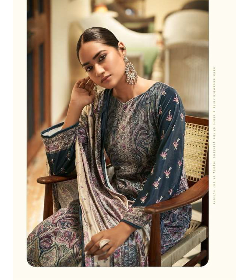 saalima- 184-005 *Top: Pure russian velvet digital print *Bottom: Pure pashmina dyed *Dupatta: Pure russian velvet digital print with four side tussle & latkan