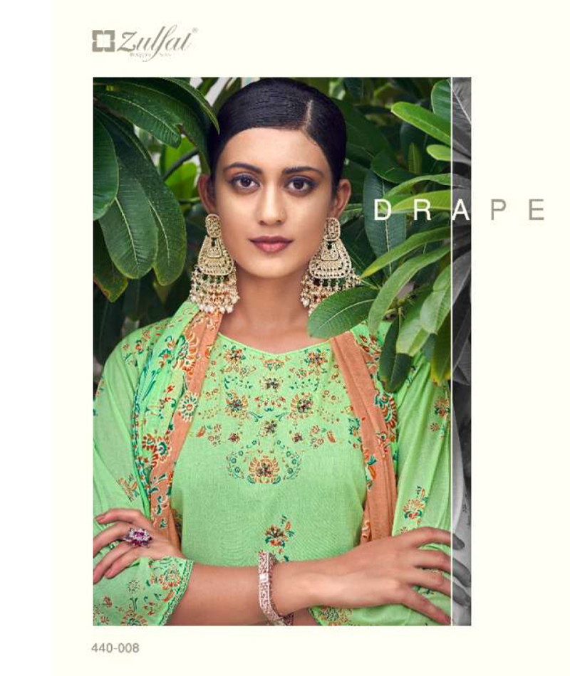 Mugdha 440-008 *Top: Premium Pure Cotton Print With Handwork 2.50 mtr *Bottom: Pure Cotton 3.00 mtr *Dupatta: Cotton Mal-Mal Dupatta 2.30 mtr
