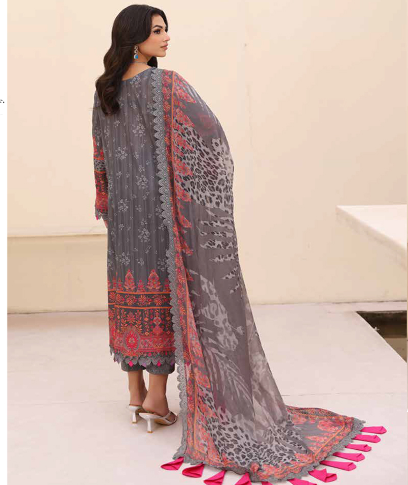 Naranji Vol 01 CN4-06 * Embroidered Printed lawn Front * Printed Lawn Back+Sleeves * Printed Cotton Trouser * Printed Chiffon Dupatta * Embroidered Dupatta