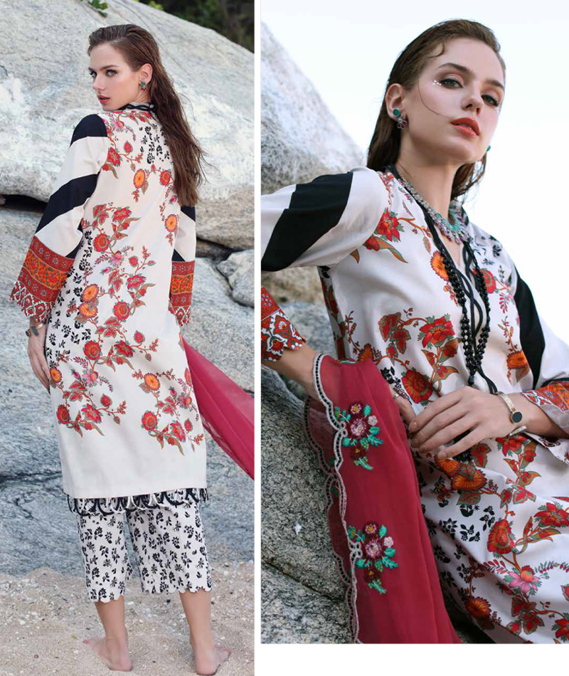 Print Melody Vol 04 PM4-27 * Printed Lawn Front+Back+Sleeves * Printed Cotton Trouser * Embroideried Dyed Chiffon Dupatta * Embroidered Dupatta Patti