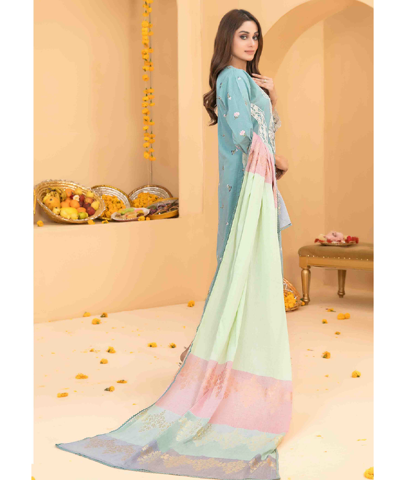 Zala by Tawakkal- D2586 * Shirt- Embroidered Lawn * Dupatta- Embroidered Fancy Dupatta * Trouser- Cotton Fabrics
