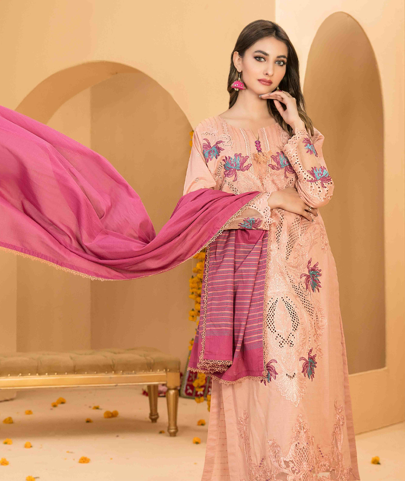 Zala by Tawakkal- D2591 * Shirt- Embroidered Lawn * Dupatta- Embroidered Fancy Dupatta * Trouser- Cotton Fabrics