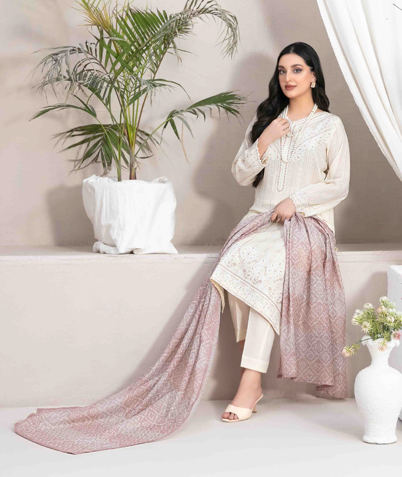Lekeesha by Tawakkal (Stitched)- D2829 * Shirt- Stitched Embroidered Lawn * Dupatta- Fancy Digital Printed Dupatta * Trouser- Cotton