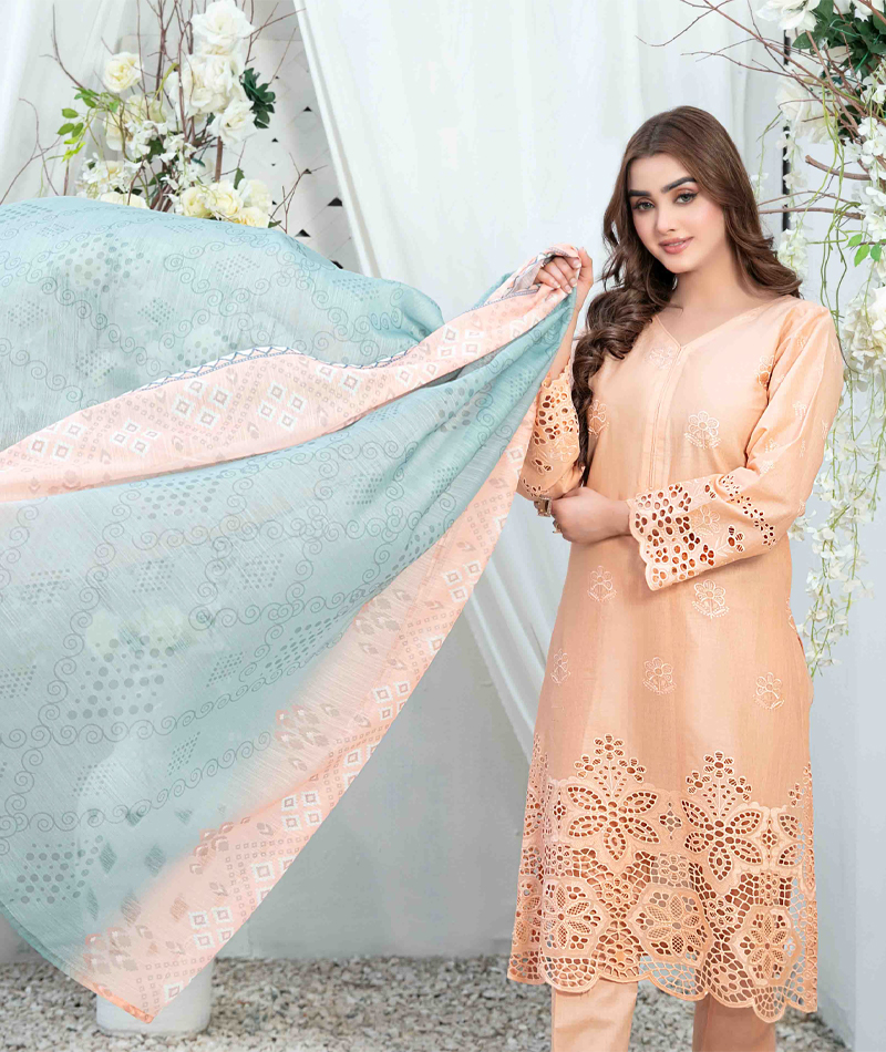 Le Classique by Tawakkal- D2239 * Shirt- Heavy Schiffli Embroidered Lawn * Dupatta- Digital Print Fancy Dupatta * Trouser- Cotton