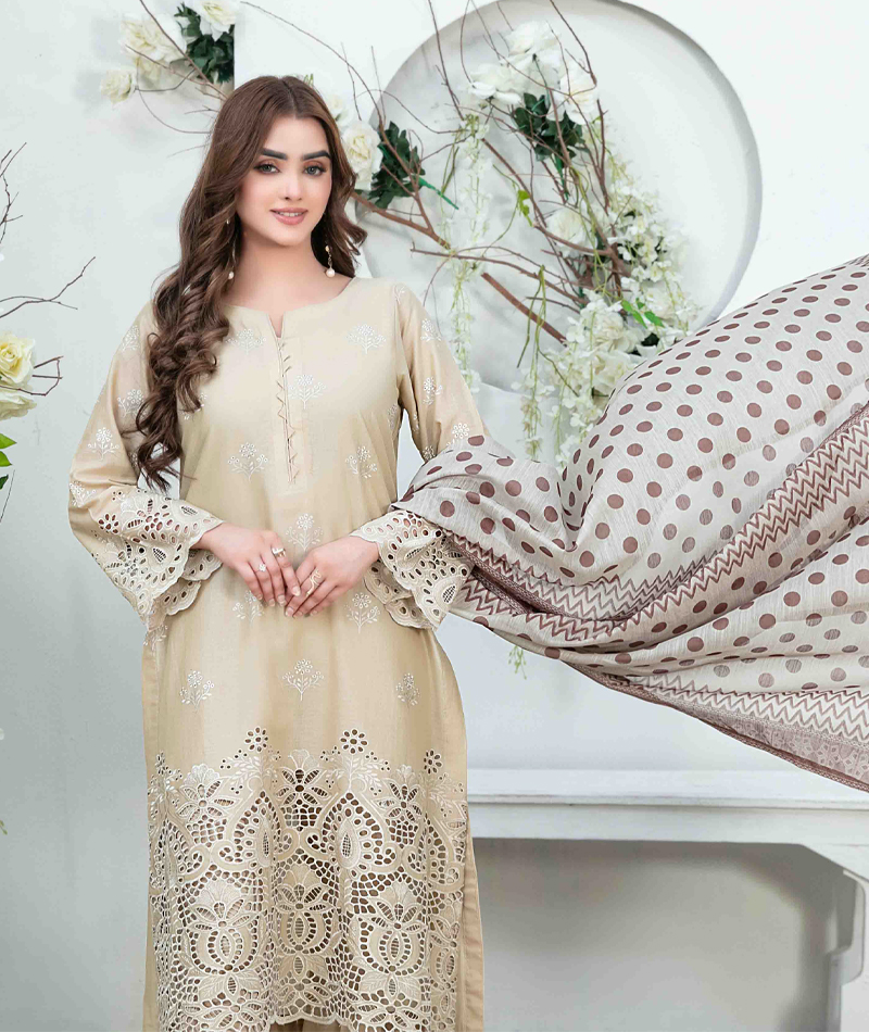 Le Classique by Tawakkal- D2241 * Shirt- Heavy Schiffli Embroidered Lawn * Dupatta- Digital Print Fancy Dupatta * Trouser- Cotton