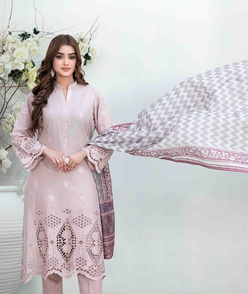 Le Classique by Tawakkal- D2244 * Shirt- Heavy Schiffli Embroidered Lawn * Dupatta- Digital Print Fancy Dupatta * Trouser- Cotton