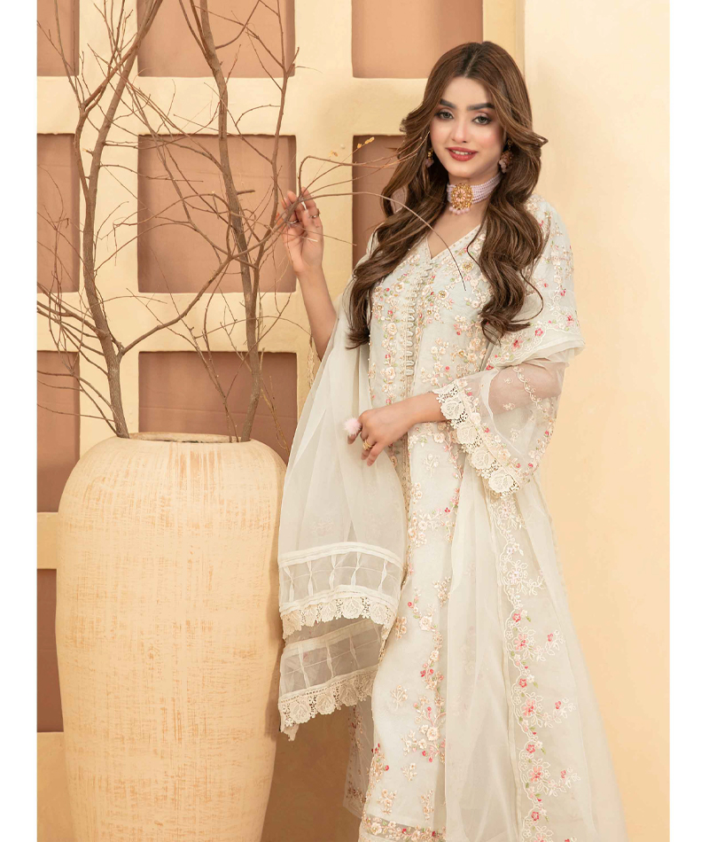 Taalea by Tawakkal- D2182 * Shirt- Stitched Embroidered Organza * Dupatta- Embroidered Organza * Trouser- Stitched Viscose Jacquard