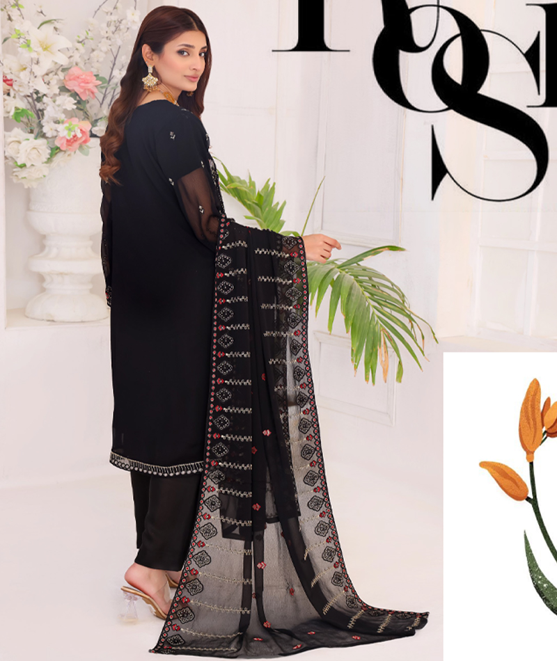 Fabiha 04 * HEAVY EMBROIDERED CHIFFON SHIRT * DECENT HANDWORK DUPATTA * PREMIUM SILK TROUSER