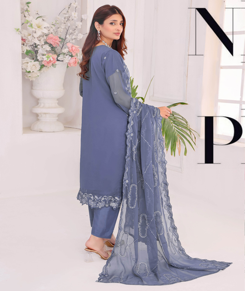 Fabiha 09 * HEAVY EMBROIDERED CHIFFON SHIRT * DECENT HANDWORK DUPATTA * PREMIUM SILK TROUSER