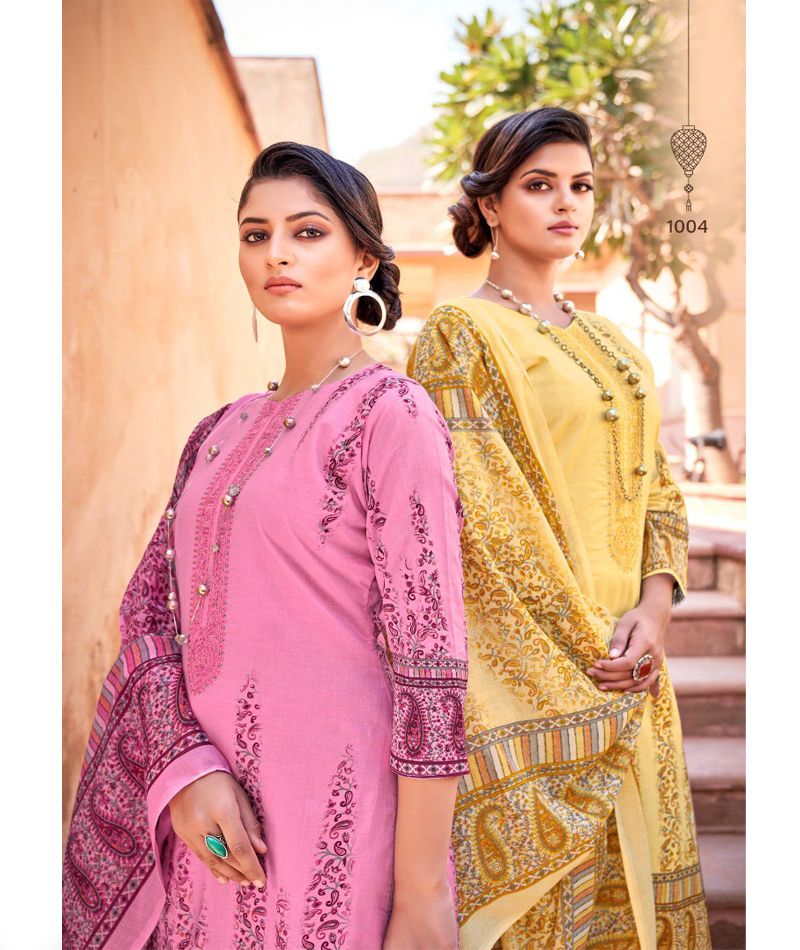 Karina 1004 * TOP : Pure cambric cotton with digital print (2.50mtr) * BOTTOM : indonesia cotton (2.50mtr) * DUPATTA : nazneen print (2.25 mtr)