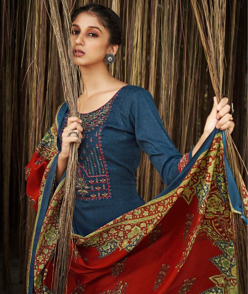 Gulmarg-Pashmina 009 * Top: premium pashmina spun with exclusive embroidery work (2.50 mtr) * Bottom: premium pashmina spun (3 mtr) * Dupatta: pure pashmina spun box pallu exclusive shawl (2.30 mtr)* Top: premium pashmina spun with exclusive embroidery work (2.50 mtr) * Bottom: premium pashmina spun (3 mtr) * Dupatta: pure pashmina spun box pallu exclusive shawl (2.30 mtr)