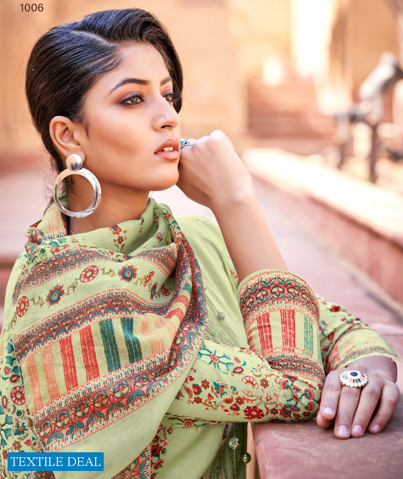 Fitoor Pashmina 1006 * Top: Pashmina Swarovski Work(“Approx 2.50Mtr”) * Bottom: Heavy Dyed(“Approx 2.60Mtr”) * Dupatta: Twill Pashmina Printed Shawl(“Approx 2.25Mtr”)